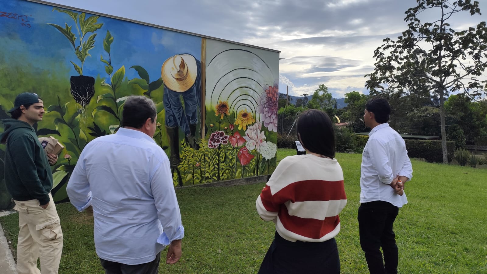 Asimismo, los afiliados tuvieron la oportunidad de conocer en primicia el mural titulado “Raíces, gente y flor: paisaje vivo del Oriente Antioqueño”, una obra del artista Lucas Rendón que rinde homenaje a la floricultura. Los asistentes pudieron interactuar con el autor durante la visita a esta pieza artística, ubicada en la ciudadela Complex Llanogrande, aliado estratégico de Asocolflores en esta propuesta cultural. La obra busca proyectar la floricultura como un agente de transformación social, gracias al empleo que genera y al bienestar que promueve entre sus colaboradores.