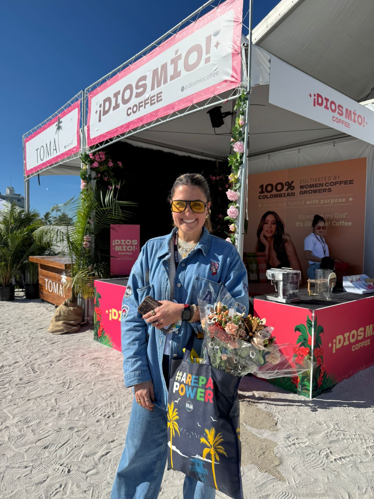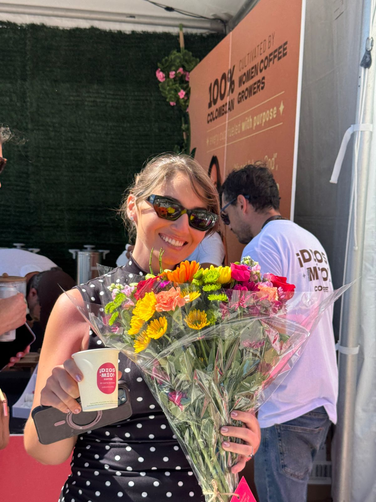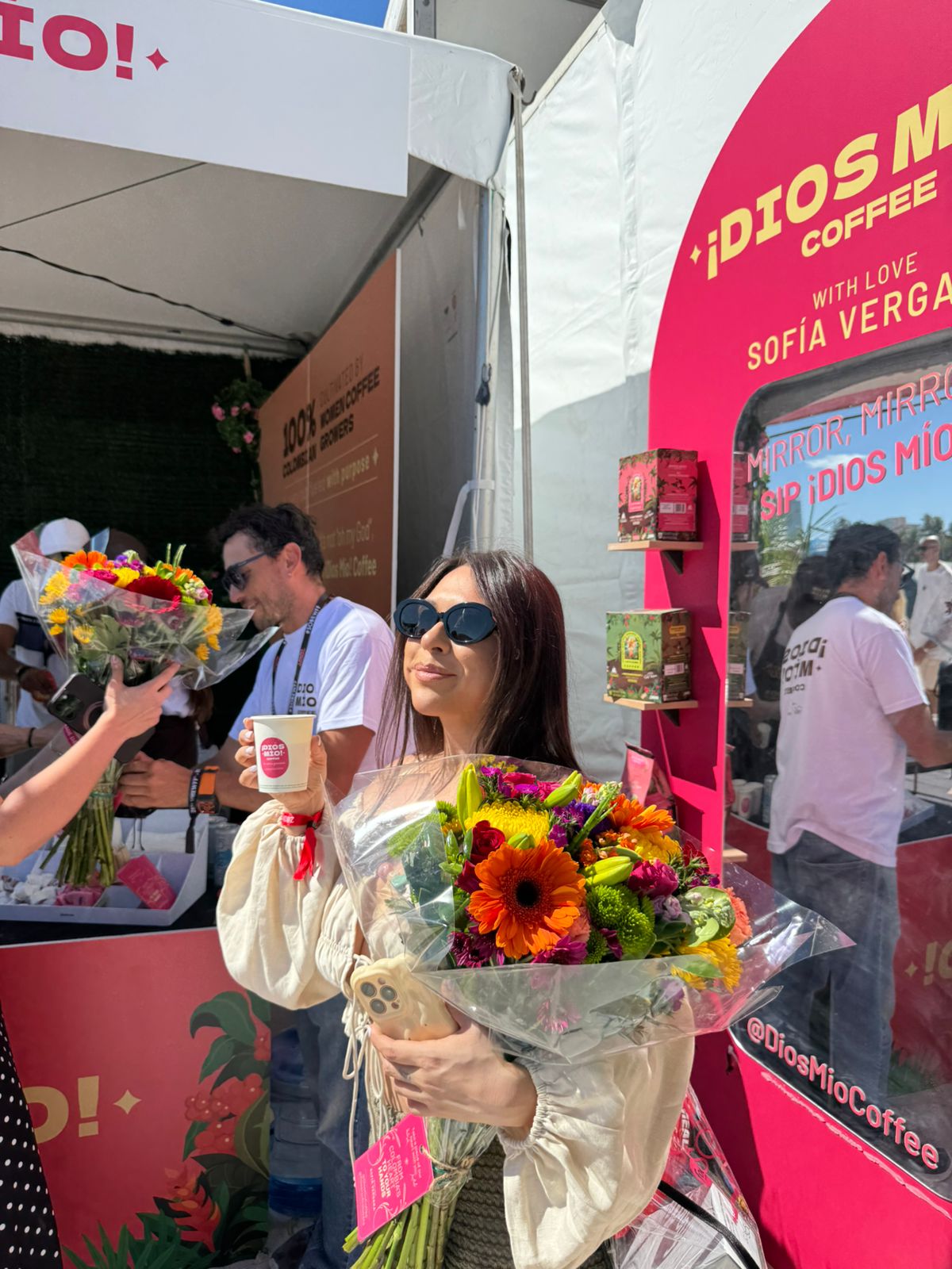 Durante cuatro días se entregaron 50 bouquets diarios dentro del booth de ¡Dios Mío! Coffee, para un total de 200 arreglos florales distribuidos entre asistentes. Cada bouquet contó con un tag de co-branding Flowers of Colombia x ¡Dios Mío! Coffee, fortaleciendo la visibilidad conjunta de ambas marcas. Asimismo, se diseñó un bouquet especial para Sofía Vergara en el marco de su presencia en el evento, potenciando el alcance y la recordación de la activación.